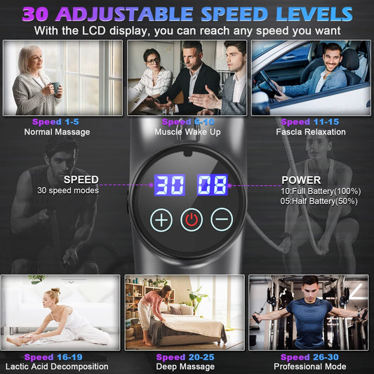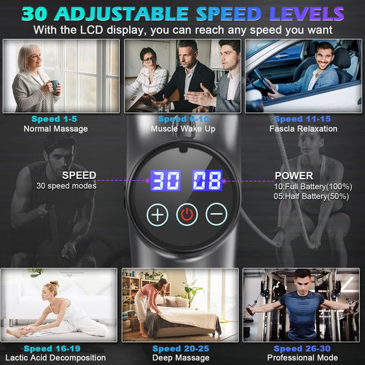 ALDOM Massage Gun Deep Tissue,Large Capacity USB-C Rechargeable Cordless Muscle Gun Massager,30 Adjustable Speeds & 8 Heads,Body Pain Relief and Fast Recovery,for Family(4800rpm,LCD Screen)