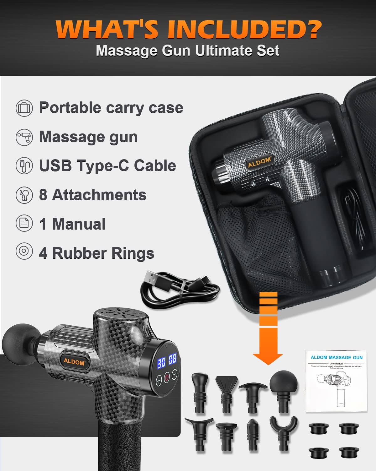 - PERFECT GIFT OF A DAILY MASSAGE - The ALDOM massage guns for athletes, women and men gifts will be best choice.They love back massage because it is easy to use. The deep muscle massager works quite well. This muscle gun massager give the gift of deep muscle relief and health. Massage gun is a type of neck and back massager that they can really be used by anyone. The deep tissue massager comes with all of the tools you need to get the best and most powerful massage.