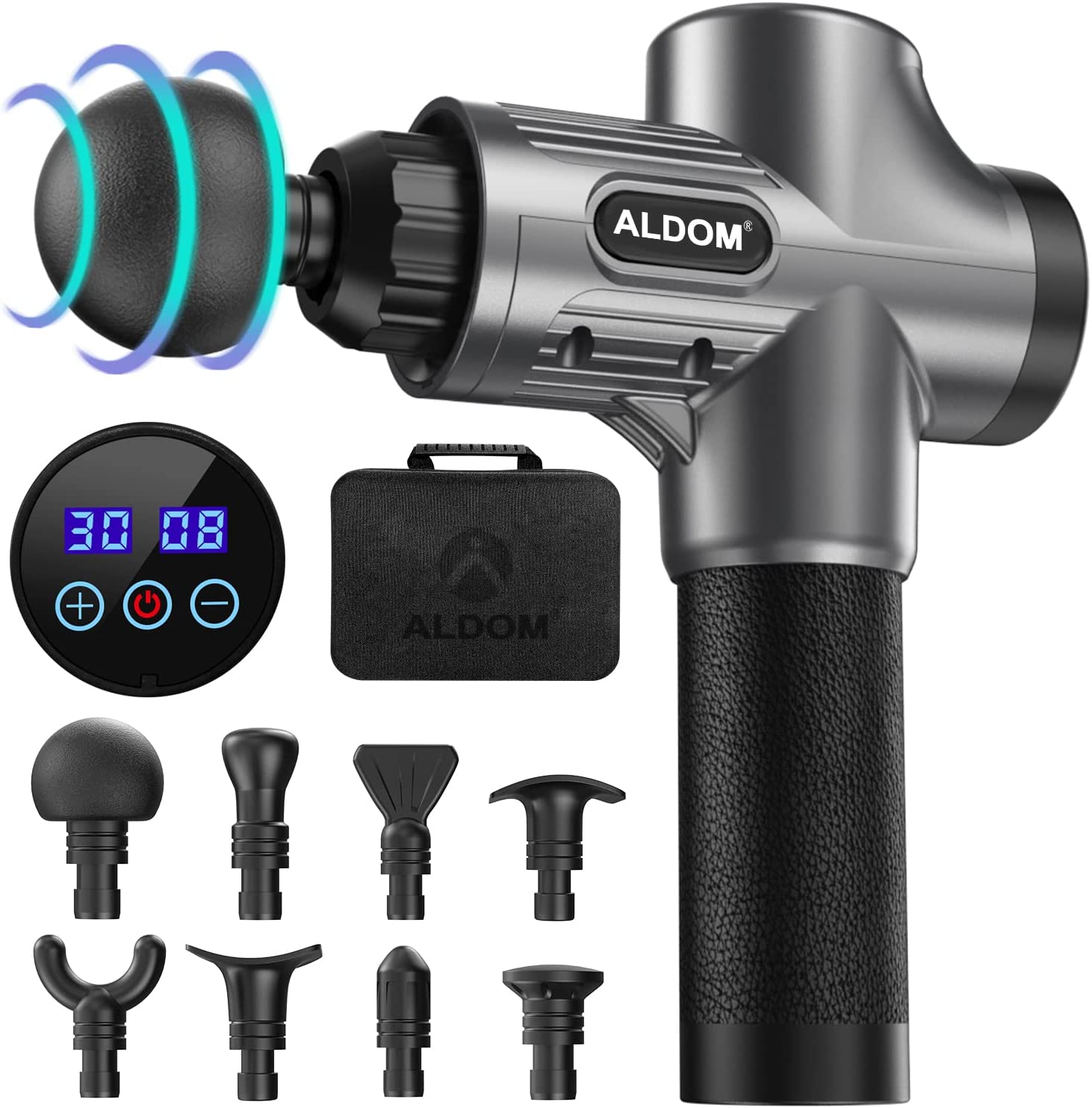 - 【PROFESIONAL POWERFUL MASSAGE GUN】 ALDOM massage gun deep tissue uses percussion therapy to relieve muscle soreness and accelerate recovery. Meanwhile this muscle massager efficiently helps relax your muscles stiffness, promotes blood flow and relieves lactic acid fastly, provides you with professional relaxing massage experience anytime and anywhere.