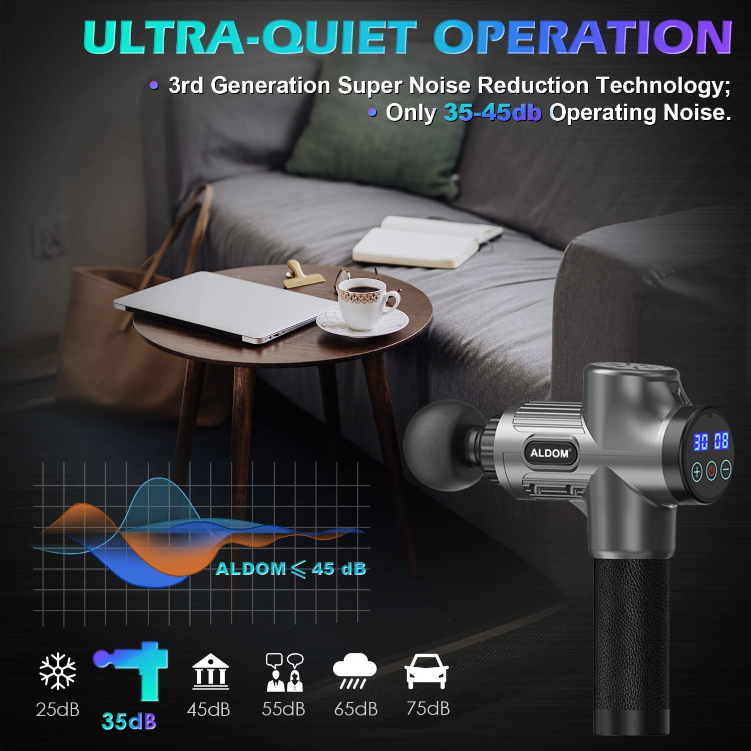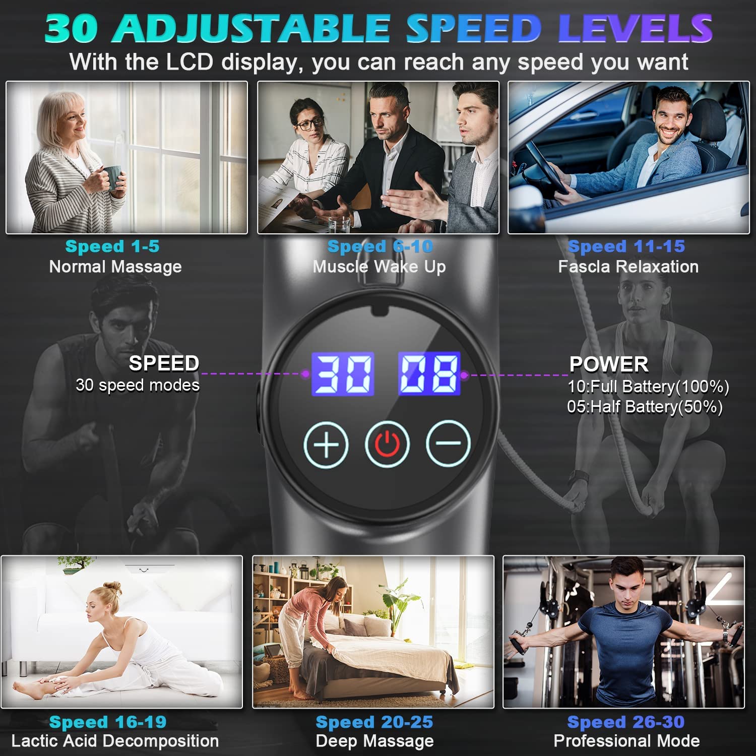 - 【30 SPEED OPTIONS】To meet different massage needs for different people, ALDOM massager gun have 30 different massage level options. 1800-4800 strokes per minute depending on the speed you select.You can easily adjust the massage speed through the LCD touch control. Perfect for men & women athletes, bodybuilders, office worker&eldery.