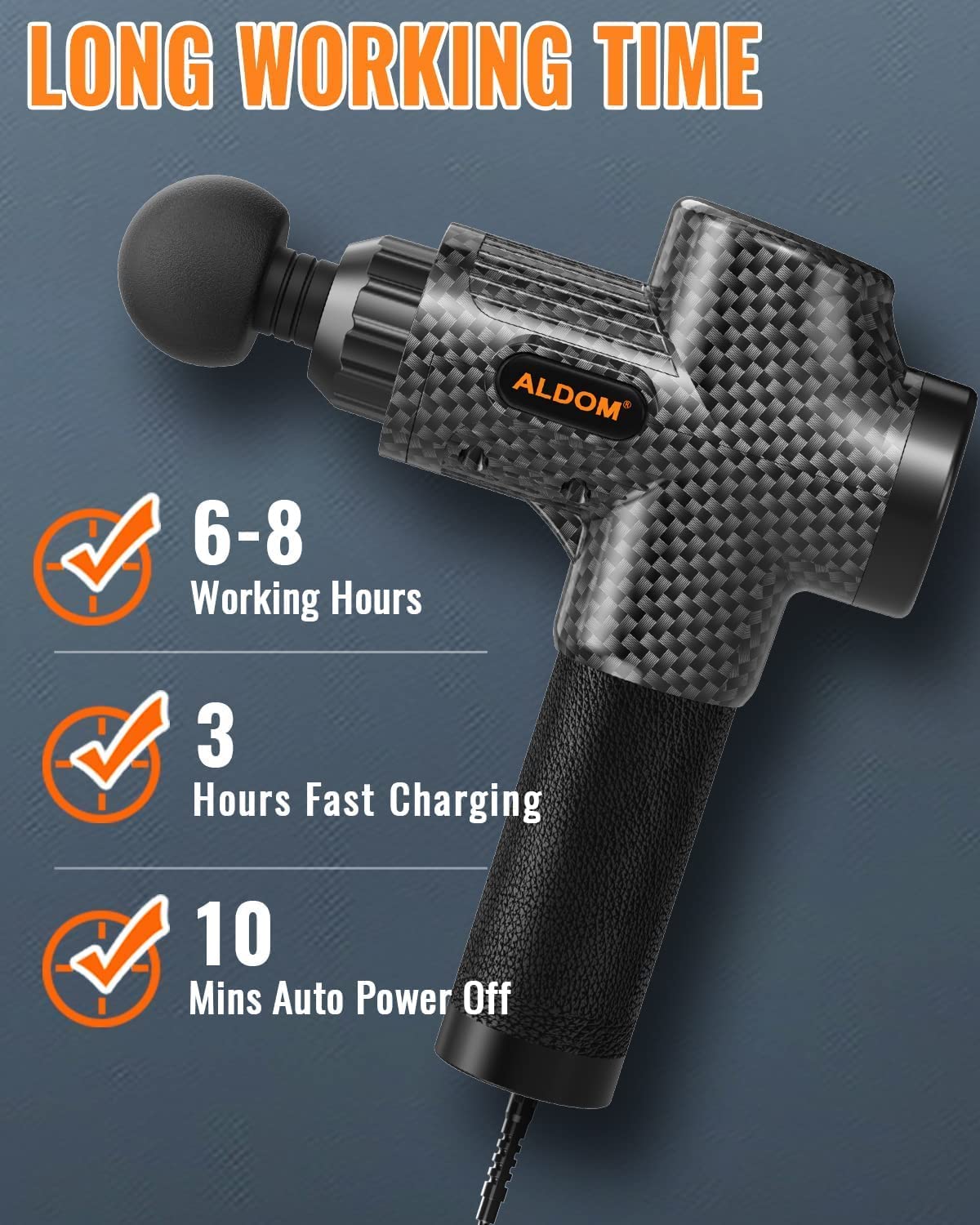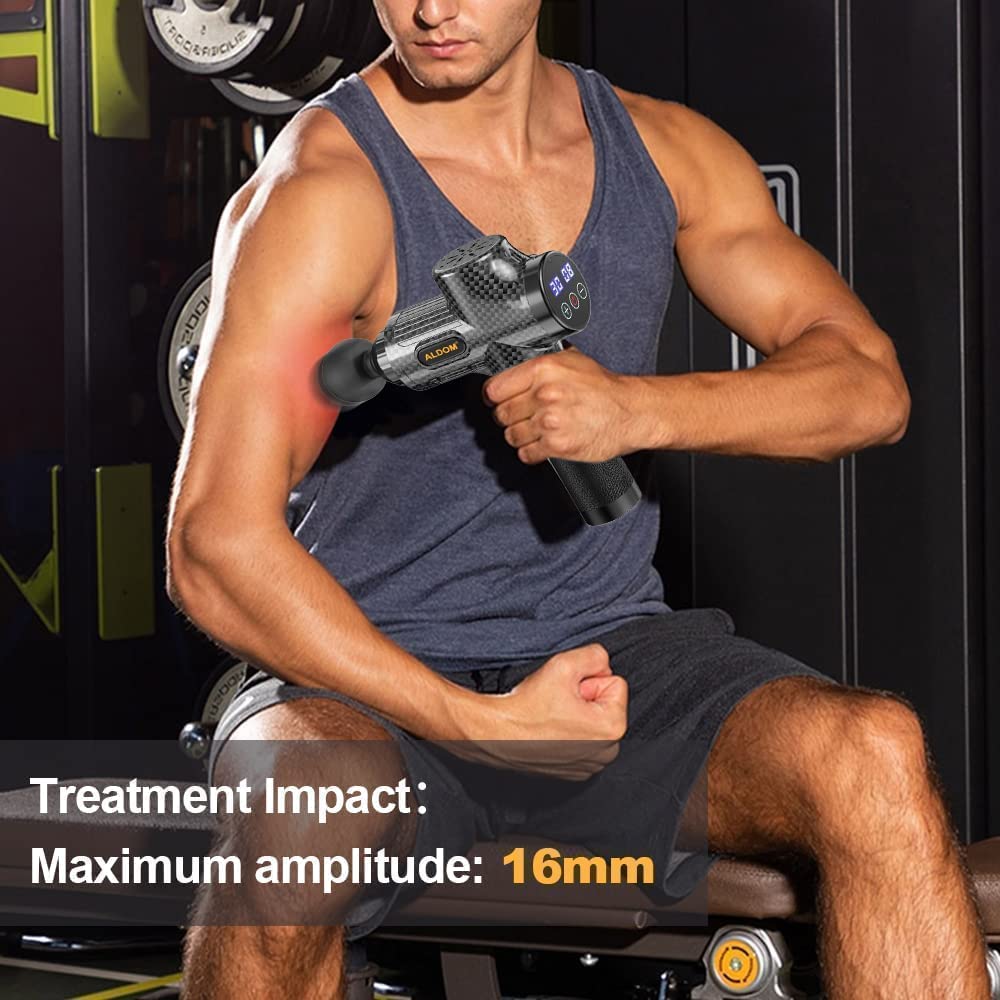- 【30 SPEED OPTIONS】 To meet different massage needs for different people, ALDOM massager gun have 30 different speed levels. Designed with strong percussions of 1800 to 4800 per minute to reach tissue up to16mm. Easy to switch massage speed through the LCD touch control. Percussion massage gun perfect for men & women athletes, Office worker, elderly.