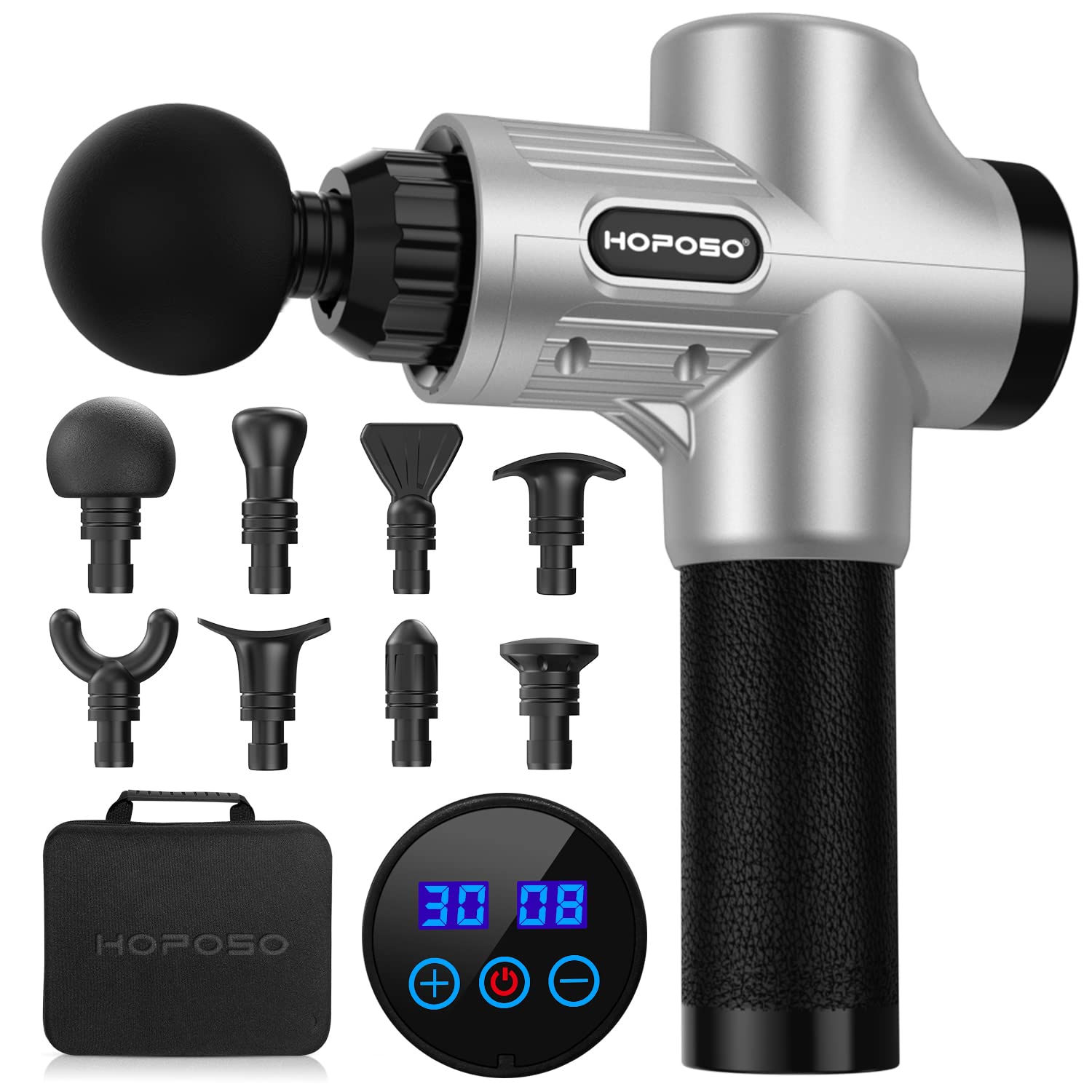Massage Gun, HOPOSO Deep Tissue Massager Muscle Massage Gun with 4800RPM 30 Speeds, Powerful Percussion Massager Gun with 8 Massage Heads, Pain Relief Recovery, Athlete, Sports, Fitness, Gifts