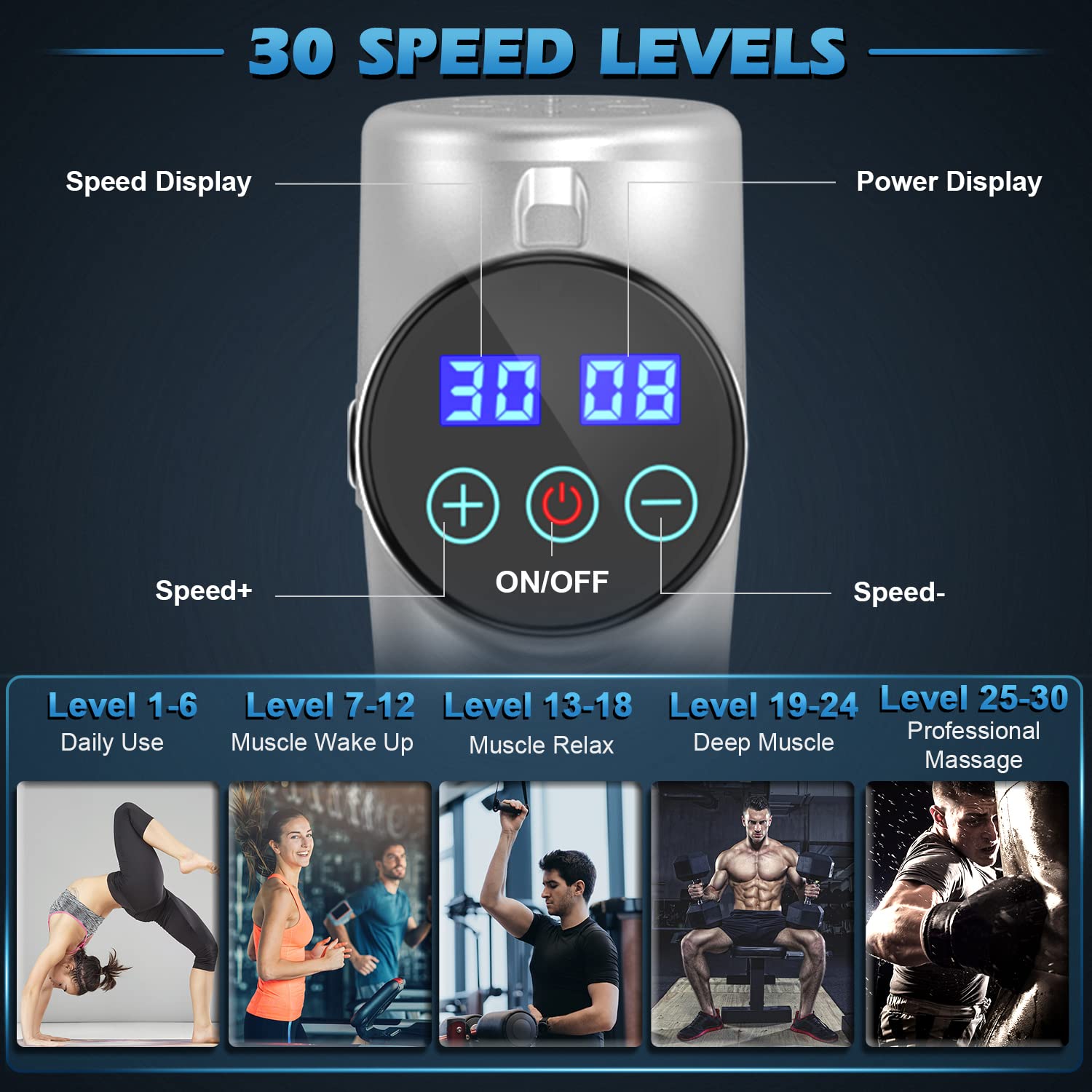 - 💪【Super Quiet Massager & 30 Speed Levels Modes 】HOPOSO professional deep tissue massage uses advanced engine to ensure power, and bring high power but low noise; has ultra-strong heat dissipation function.30 Adjustable massage modes ,1200(low)- 4800(high)/minute, You can enjoy the deep tissue massager any time anywhere, very quiet!
