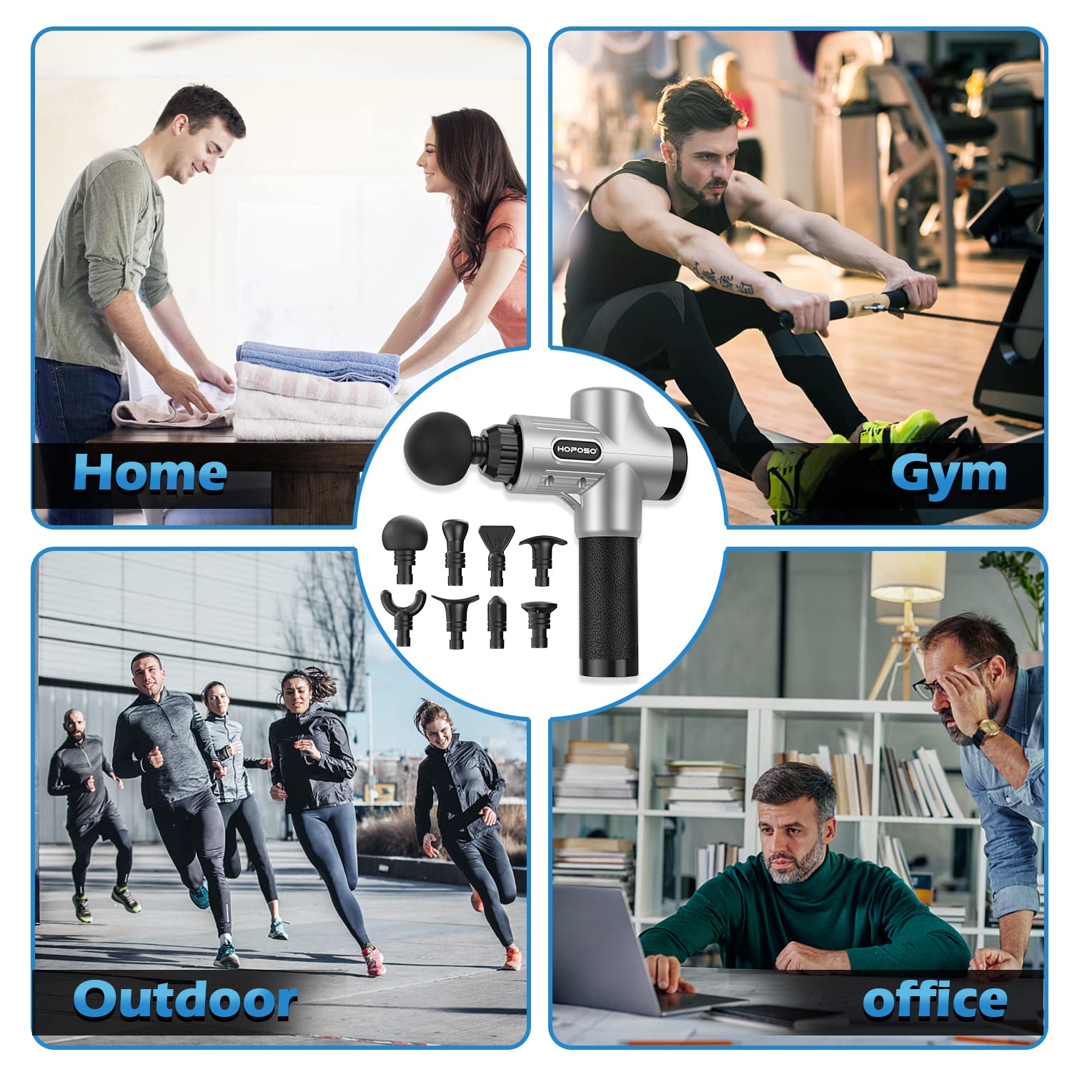 - 💪【 POWERFUL & HEALTHY MASSAGE GUN】HOPOSO Massage gun can help the user relieve muscle stiffness and soreness, improve the overall health of the body's soft tissues; deep tissue massage accelerates the blood circulation after exercise,greatly shortening the muscle recovery time. Perfect for athletes, rock climbers, fitness instructors, hiking.