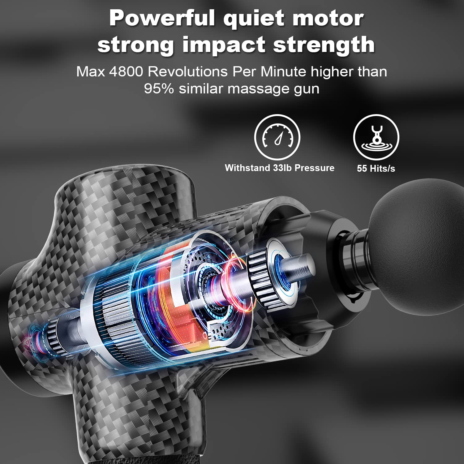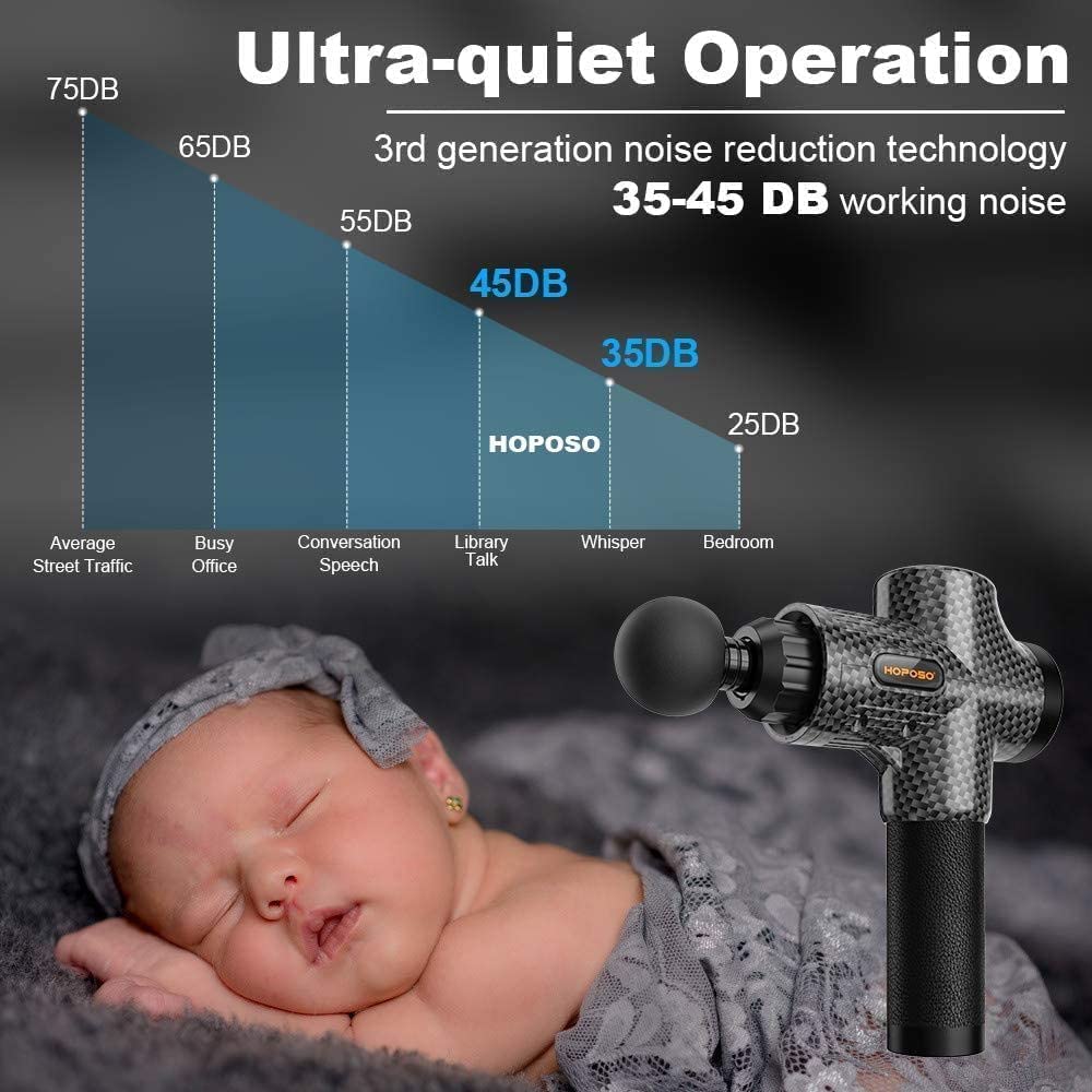 - 💪【30 Modes And Ultra-Quiet Massage Gun】HOPOSO massager gun adopts high-quality motor, which has ultra-strong heat dissipation function, no crash, it can run for a long time and have 30 Adjustable vibration mode ,1200(low)- 4800(high)/minute, You can adjust the frequency according to the different parts of the massage.the high-precision mould connected the machine head and the body tightly, the noise in the process of running can be effectively reduced, is about 42db.very quiet.