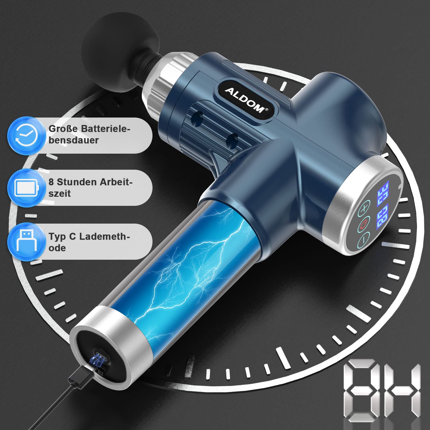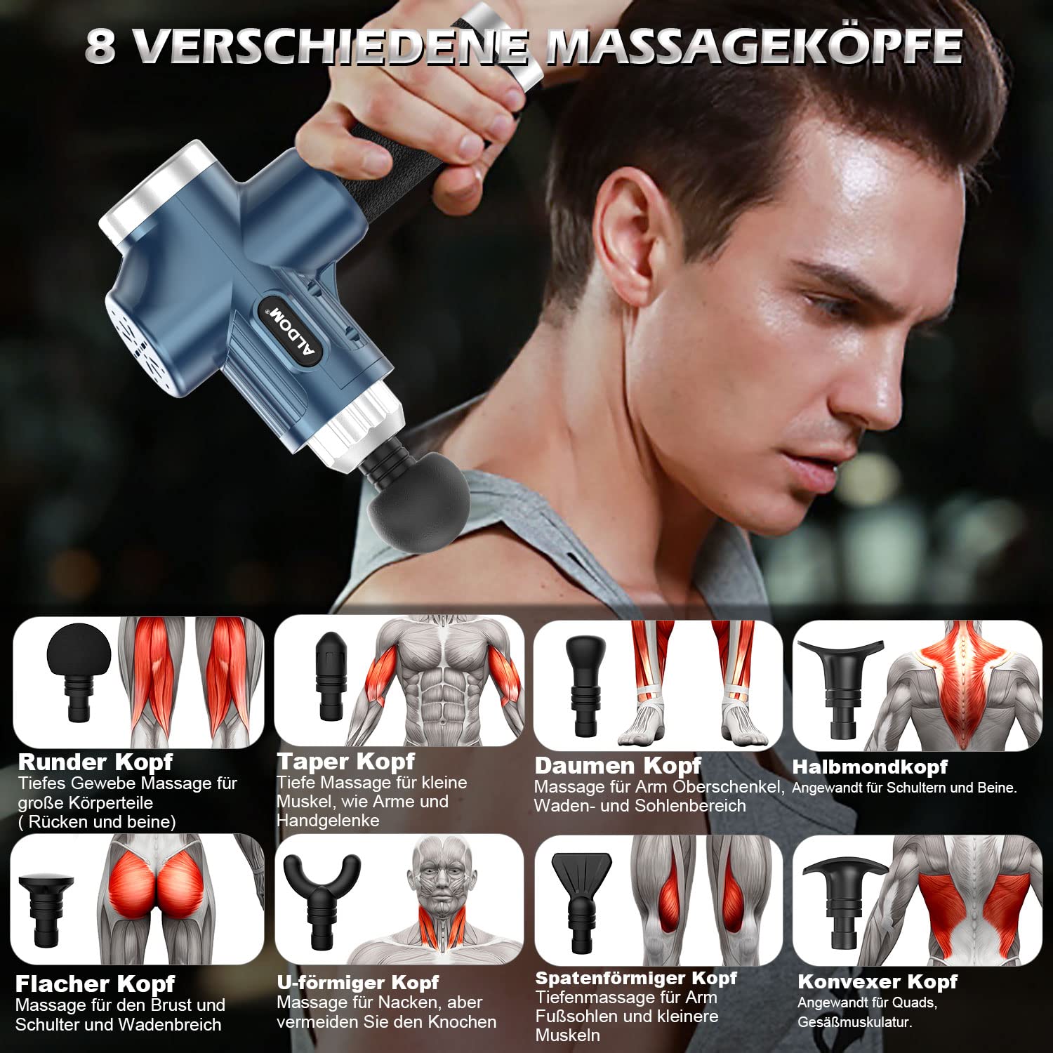 Massagepistole Massagegerät ALDOM Massage Gun für Nacken Schulter Rücken Massage pistole mit 8 Massageköpfen und 30 einstellbaren Geschwindigkeiten Massage pistole Elektrisch Massagegerät