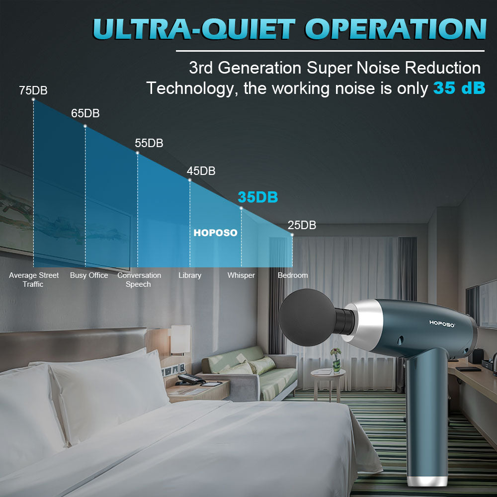 - Pistola de masaje ultraligera: la cabeza de la máquina se adapta al cuerpo con alta precisión y fuerza, y el ruido en el proceso de ejecución se puede reducir de manera efectiva. Gracias a la forma de alta precisión, el cabezal de la máquina y el cuerpo principal están firmemente conectados, el ruido de funcionamiento se puede reducir eficazmente mediante un deslizamiento suave. El ruido de funcionamiento es inferior a 45 dB, súper silencioso.